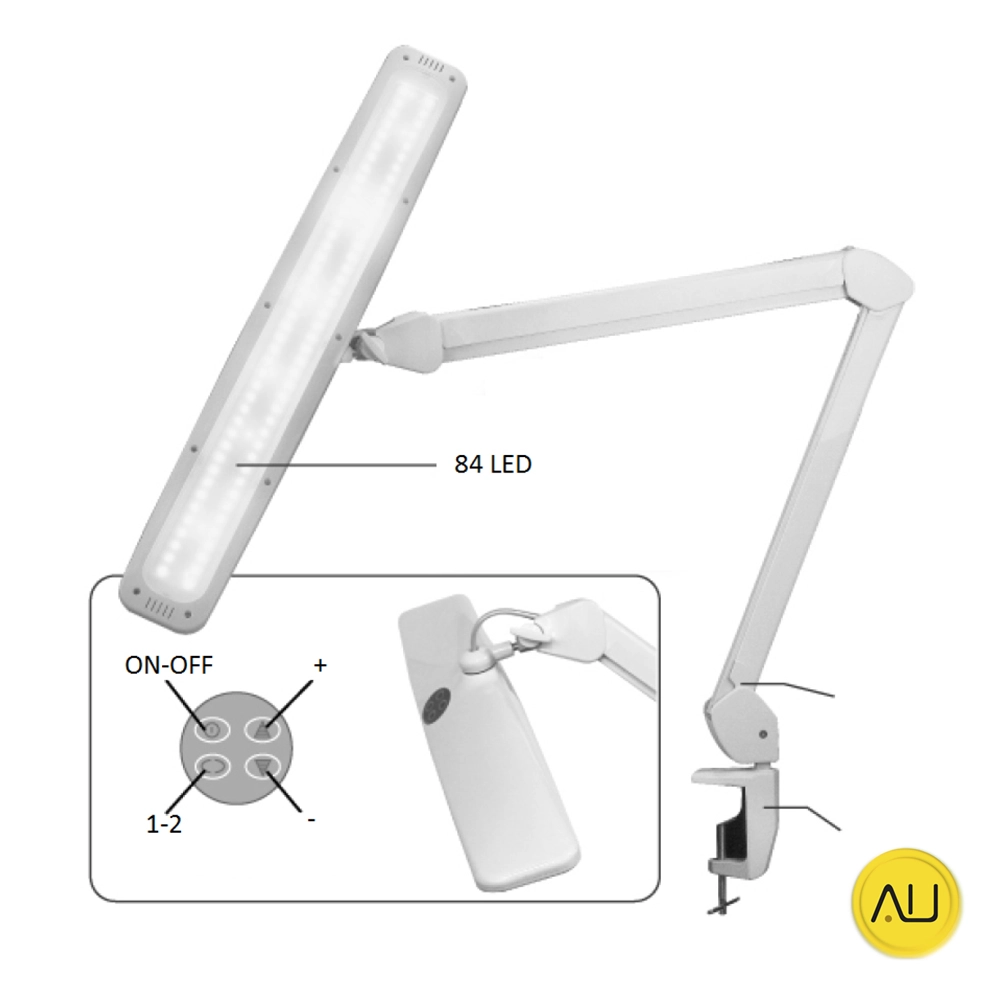 Máxima claridad en cada detalle con la lámpara LED de brazo lateral de MESTRA. Su estructura articulada permite dirigir la luz con precisión, ideal para mejorar la visibilidad en cualquier espacio de trabajo. Con tecnología LED de alto rendimiento, proporciona una iluminación potente y eficiente, adaptándose a tus necesidades.