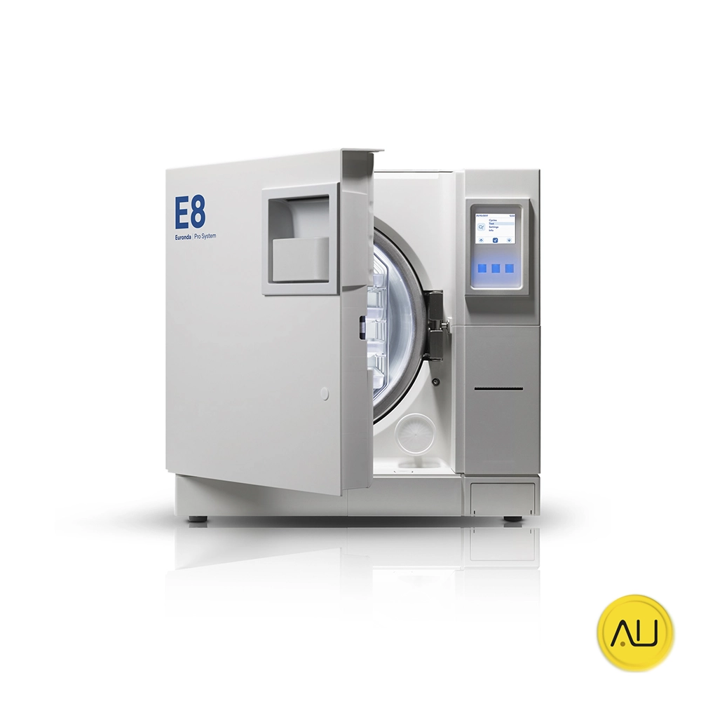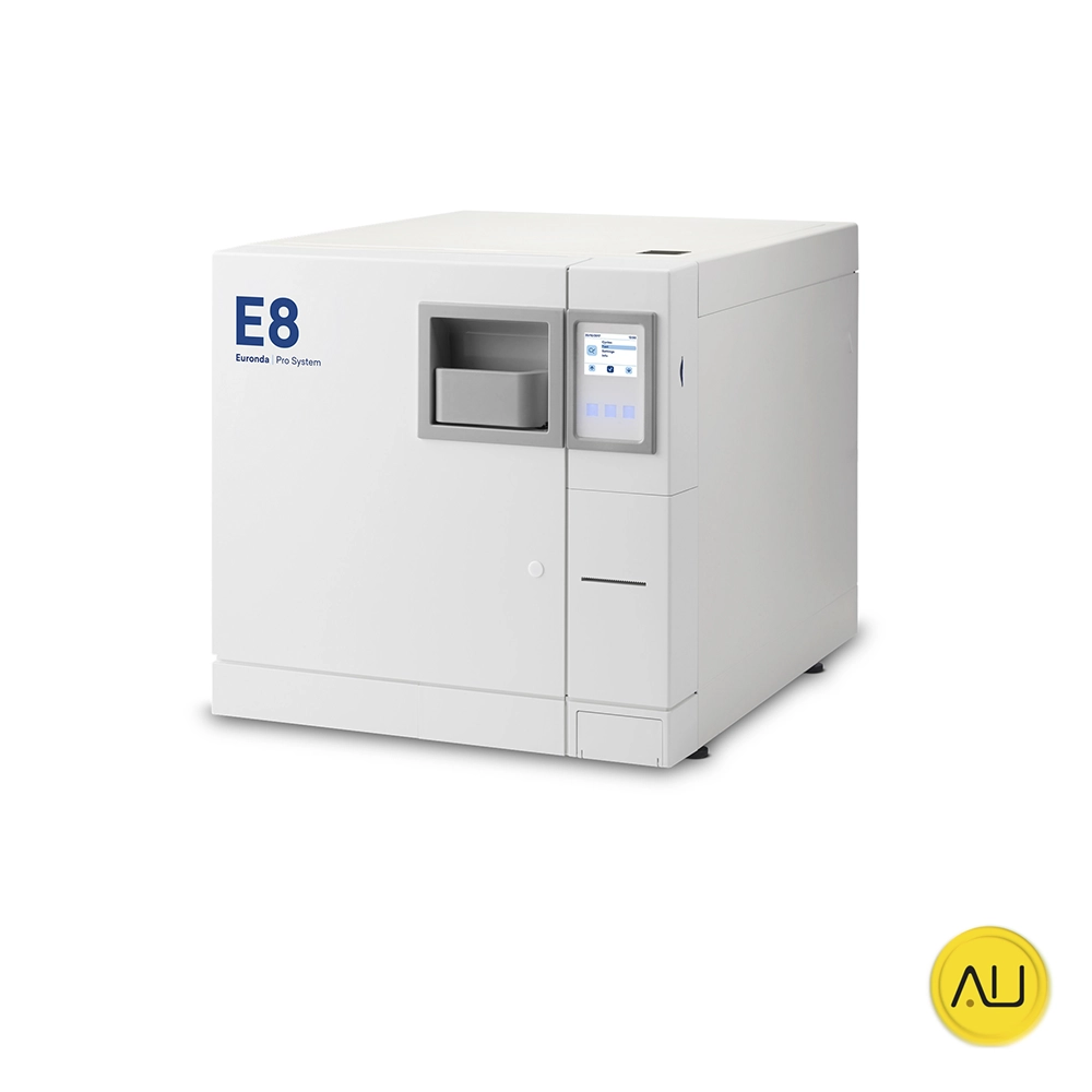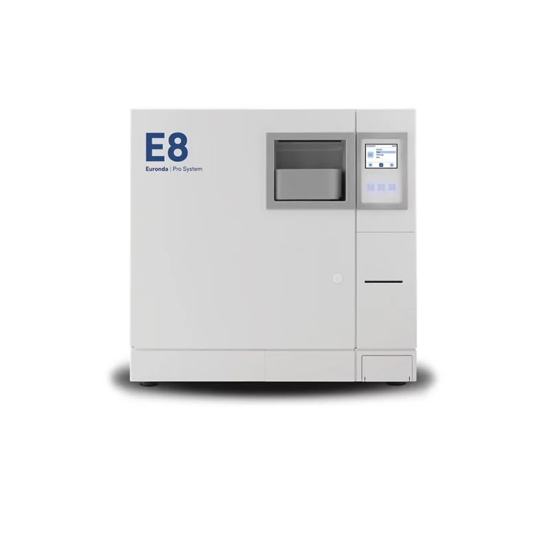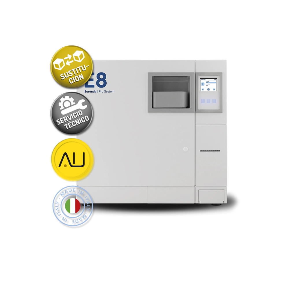 Fácil y práctico. El Euronda E8 es un autoclave de clase B que destaca por su diseño compacto y su sistema de trazabilidad avanzado. Con una cámara de 24 litros y display táctil, ofrece una esterilización eficiente y conforme a la normativa EN13060.