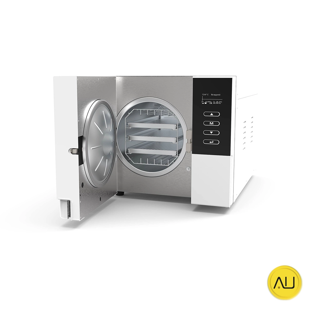 - Cuentan con un sistema de control de alta precisión que garantiza unos resultados de esterilización perfectos (EN13060). Su cámara y su puerta son de acero inoxidable con acabado de electro-pulido. Su tanque de agua es tipo abierto, lo que facilita un fácil llenado y limpieza.