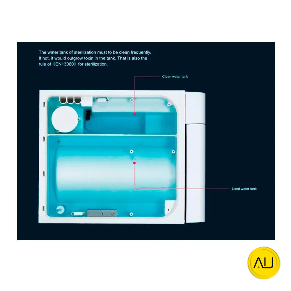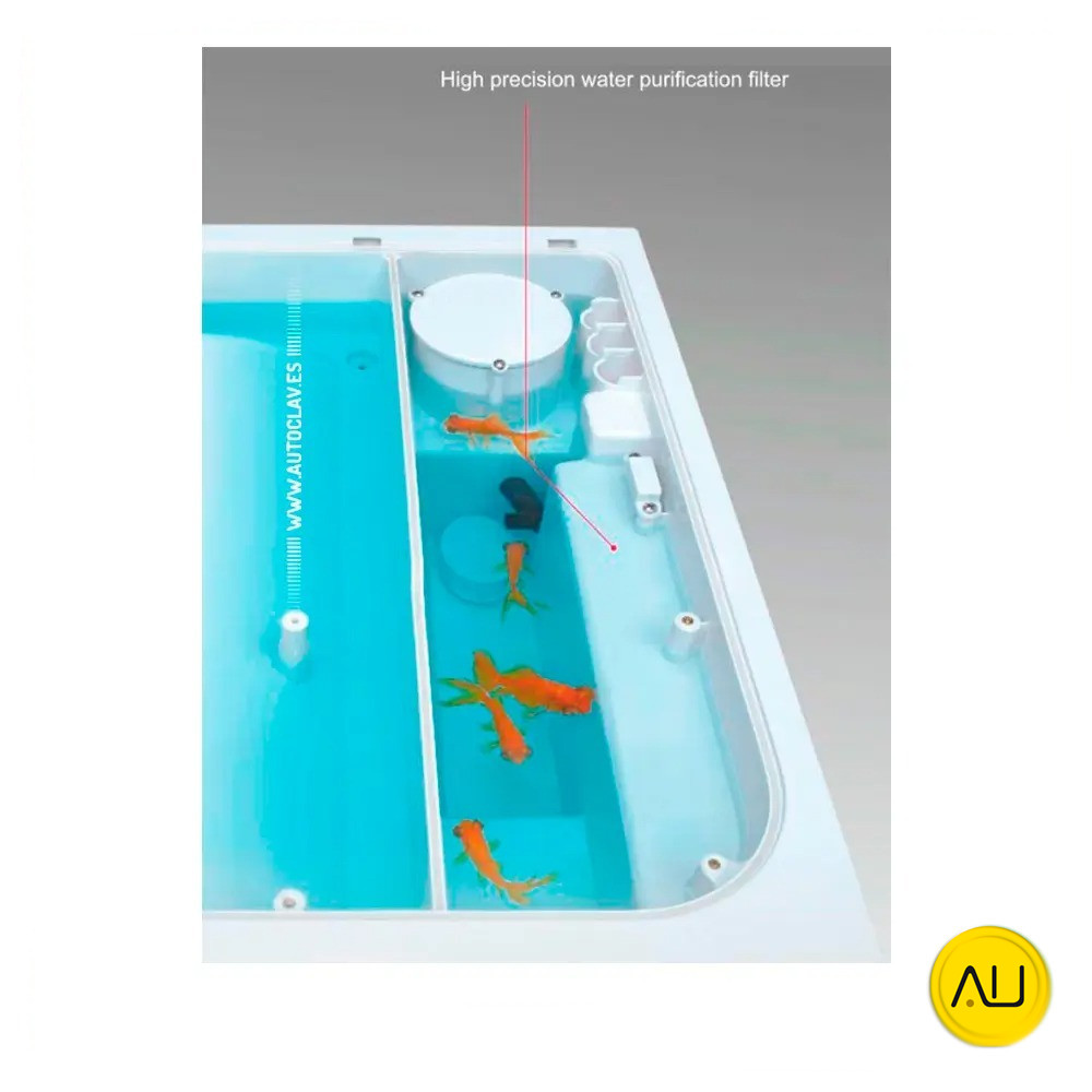 7 programas a 121 y 134ºC. 4 son de esterilización, 2 de test y 1 de autolimpieza.