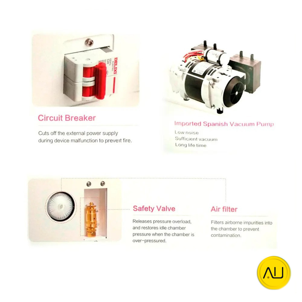 * Vacío inicial fraccionado en 3 fases mediante bomba de vacío.