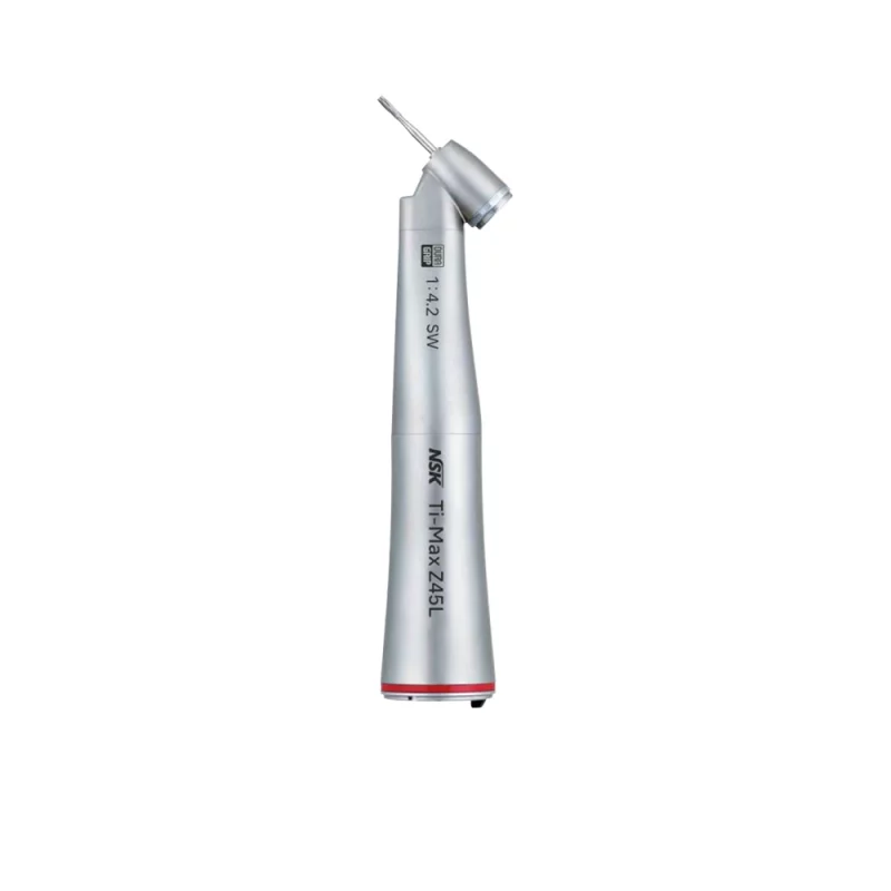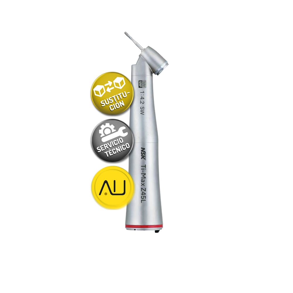 NSK Ti-Max Z25L es un contra-ángulo de alta gama con cuerpo de titanio, ligero y resistente. Equipado con una óptica de vidrio celular y un microfiltro, ofrece visibilidad superior y un sistema de cabezal limpio. Tiene un sistema de pulverización de agua con dos modos (bruma y chorro) y una velocidad máxima de 40,000 min-1. Ideal para su uso con fresas de CA (Ø2,35), es termodesinfectable y autoclavable hasta 135°C.