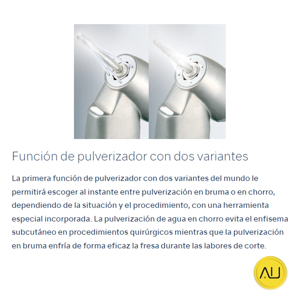 Pulverización Bidireccional: La función de pulverizador con dos variantes permite escoger entre pulverización en bruma o en chorro, adaptándose a diferentes situaciones y procedimientos.