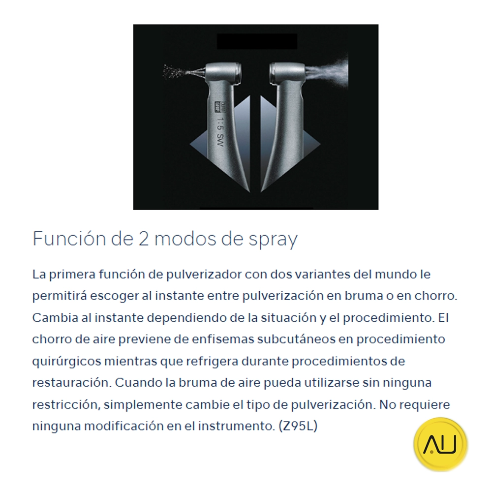 Rendimiento Excepcional: Gracias a su potente motor y sistema de rociado de cuatro vías, este contra-ángulo garantiza un rendimiento superior en cada procedimiento.
