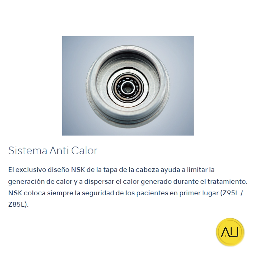 El NSK Contra-ángulo Ti-Max Z95L es una herramienta de alta precisión y durabilidad, ideal para tratamientos dentales avanzados. Equipada con un motor potente que alcanza hasta 200,000 RPM y un sistema de rociado de cuatro vías, garantiza una refrigeración eficiente y un funcionamiento silencioso. Su cuerpo de titanio ligero y resistente, junto con su diseño ergonómico, proporciona comodidad y reduce la fatiga del profesional. Además, cuenta con un sistema de cabezal limpio que evita la entrada de contaminantes, prolongando la vida útil del dispositivo.