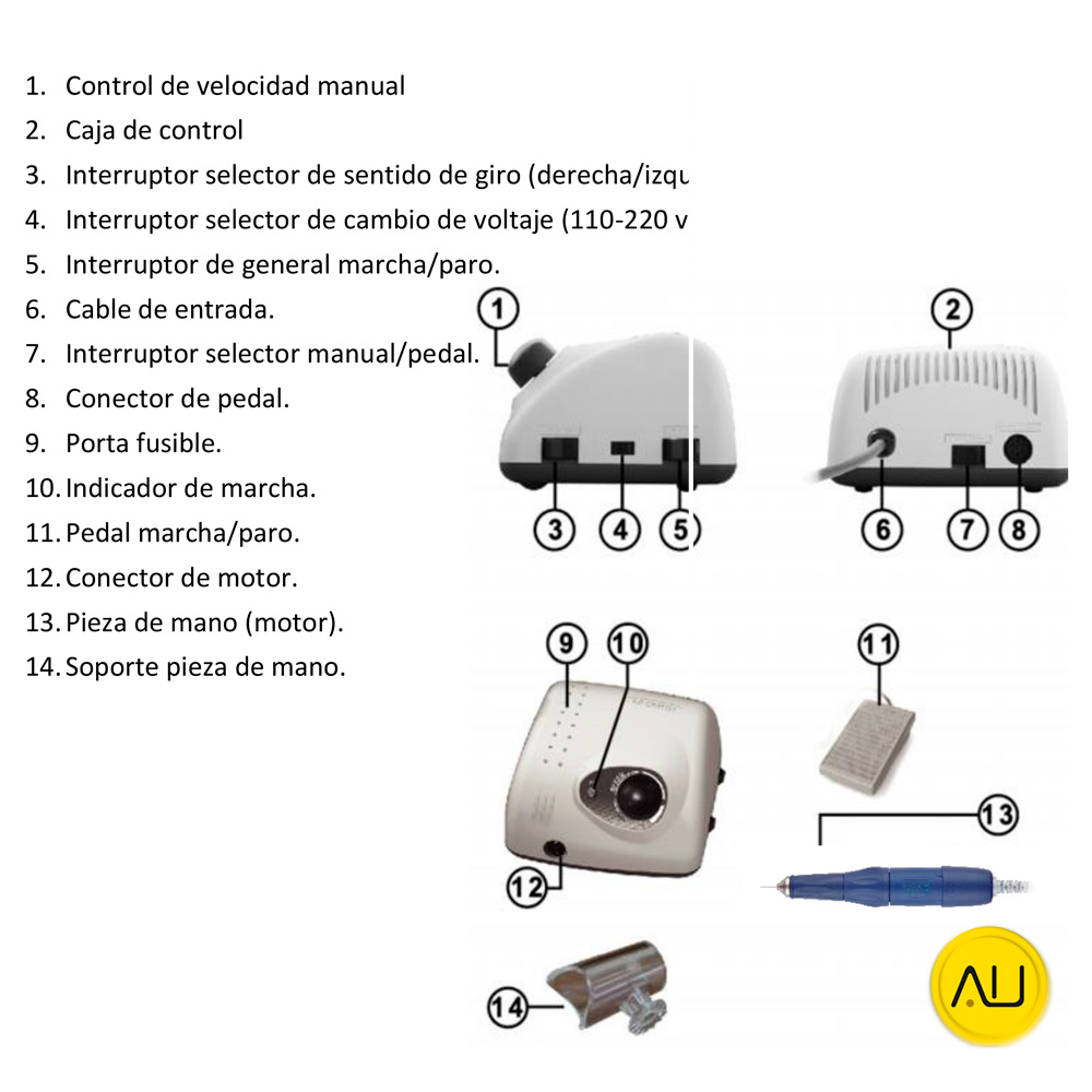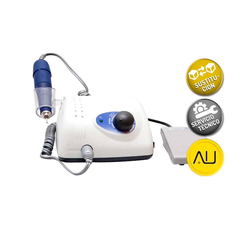 El Strong 210 es el dispositivo más demandado en el mercado de la manicura rusa. Su pieza de mano ofrece un excelente agarre, y su funcionamiento es silencioso y con mínimas vibraciones, lo que facilita enormemente el trabajo.