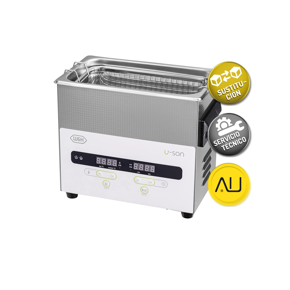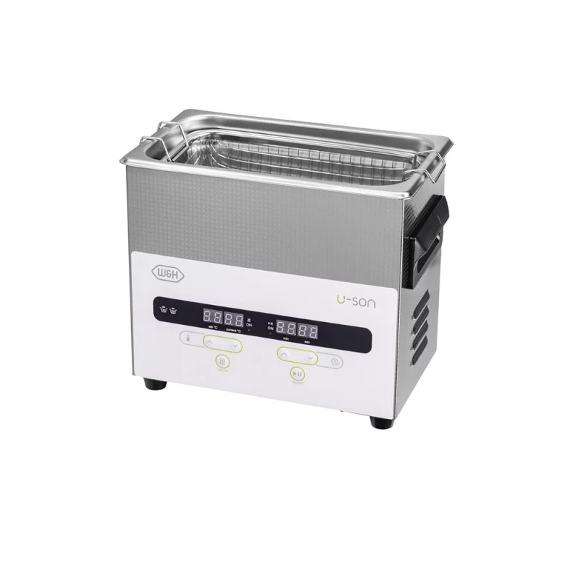 El U-Son de 3 litros de W&H ofrece una limpieza profunda mediante ultrasonidos, ideal para instrumental médico y odontológico. Su diseño compacto y silencioso garantiza un uso cómodo en cualquier entorno clínico, mientras que su tecnología avanzada asegura resultados homogéneos y seguros en cada ciclo.