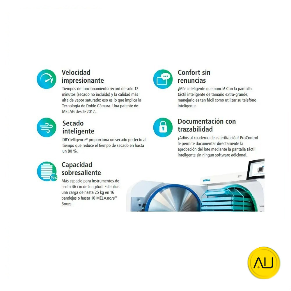 - Velocidad impresionante: doble cámara (tecnología patentada) para tiempos de trabajo récord.